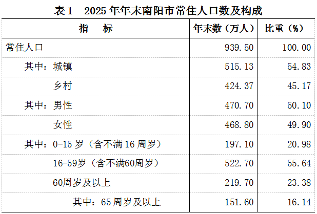 2025年南阳市国民经济和社会发展统计公报